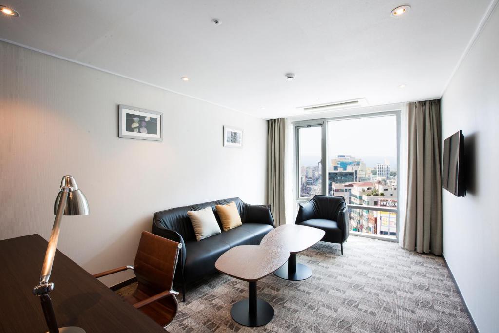 A reasonably priced stay that suits my extended family trip. Rooms and toilet are rather run down but clean. My family enjoys the convenience of having BHC fried chicken from the lobby cafe and a 7-11 store right beside the hotel. Good for those who drives as the security at the basement carpark is rather tight and 24/7. Limited food and shopping options within the vicinity but short drive to where all the main shopping and eatery belts were. Location is quite centralized in Jeju so we did day trips to all attractions to avoid packing n unpacking of luggages. Seems like they are revamping some of their rooms. Looking forward to my next stay when I visit Jeju again.