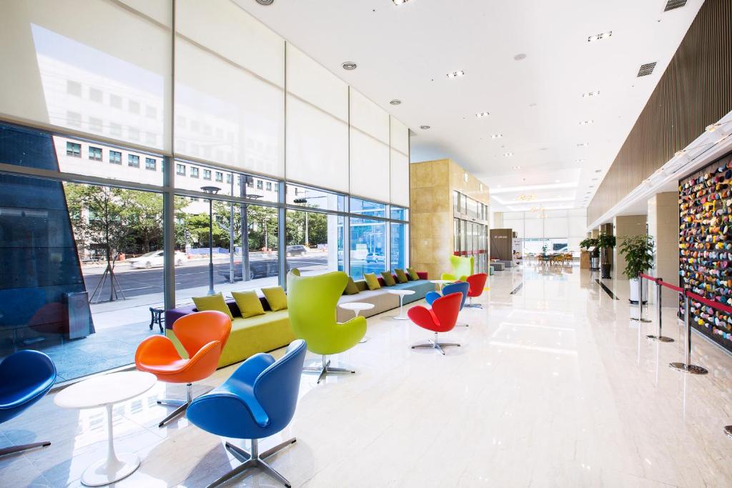 Benvingut al Ramada Jeju Cityhall, un elegant hotel de 4 estrelles situat al cor de Jeju, Corea del Sud. Inaugurat el 2017, aquest modern establiment ofereix una experiència inoblidable amb 357 habitacions dissenyades per al confort i la comoditat dels seus hostes. Ubicat a només 5,9 km del centre de la ciutat, el Ramada Jeju Cityhall és l'escapada perfecta tant per a viatgers d'oci com per a professionals en viatge de negocis, amb un temps d'accés a l'aeroport d'aproximadament 15 minuts.