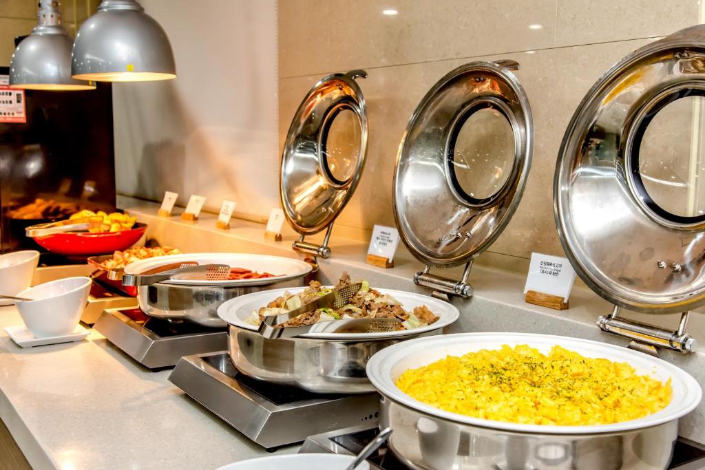 Al Ramada Jeju Cityhall, els hostes poden gaudir d'una oferta gastronòmica variada i deliciosa que satisfà tots els gustos. El restaurant de l'hotel destaca per la seva cuina exquisida, on els xefs preparen plats que combinen ingredients frescos i locals amb tècniques culinàries modernes. Els esmorzars són un moment especial, amb un bufet d'esmorzar que ofereix una selecció rica i diversa, incloent opcions de cuina continental que faran les delícies de tots els paladars.