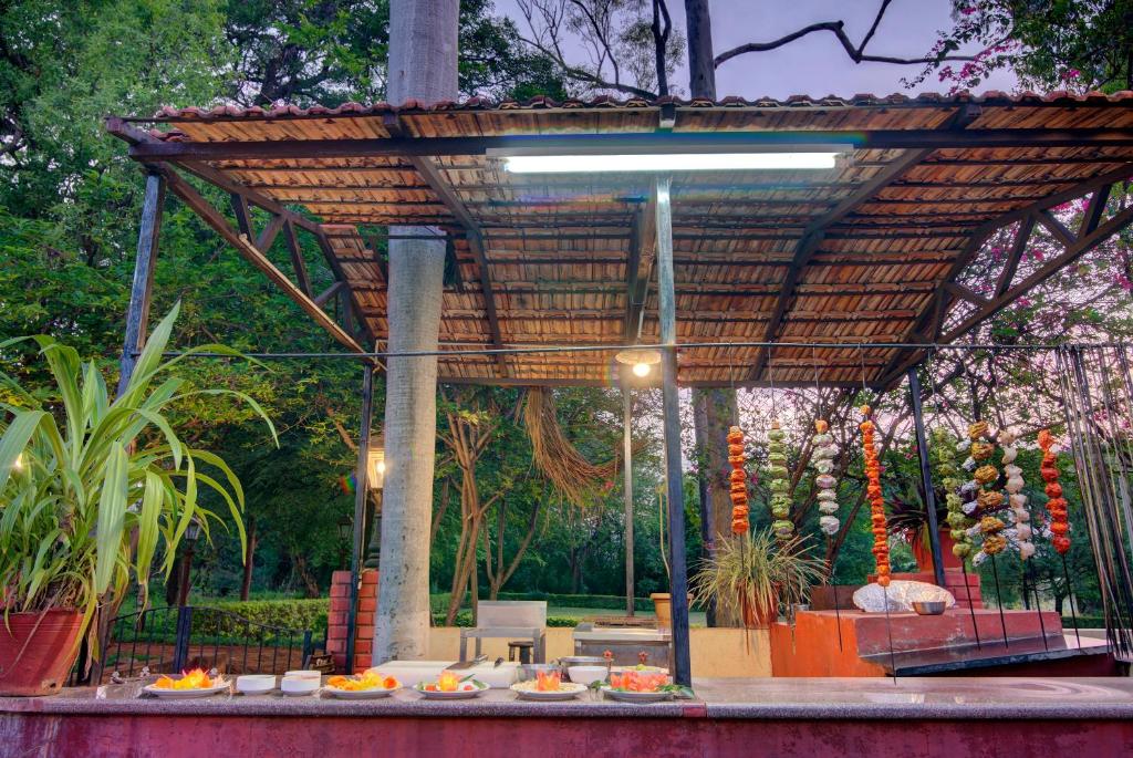 When it comes to dining options near WelcomHeritage Shivavilas Palace, guests will be spoilt for choice. Within close proximity, you'll find a range of restaurants that cater to every palate. Indulge in authentic Indian cuisine at Mayura Bhuvaneshwari, where traditional flavors and aromatic spices take center stage. For a taste of local delicacies, head to Gopi Guesthouse and Restaurant, Prince Restaurant, or Mango Tree, where you can savor mouthwatering dishes made with fresh, locally sourced ingredients. If you're in the mood for some international flavors, Shiv Moon and The Goan Corner offer a variety of dishes from around the world. For a memorable dining experience with a stunning view, visit Top Secret Riverview Restaurant or Geeth River View Restaurant, both offering breathtaking vistas of the river. And if you're looking for a quick bite or a refreshing drink, Sagar Hotel and New Shanthi are great options to satisfy your cravings. With such a diverse selection of restaurants nearby, your taste buds are in for a treat during your stay at WelcomHeritage Shivavilas Palace.