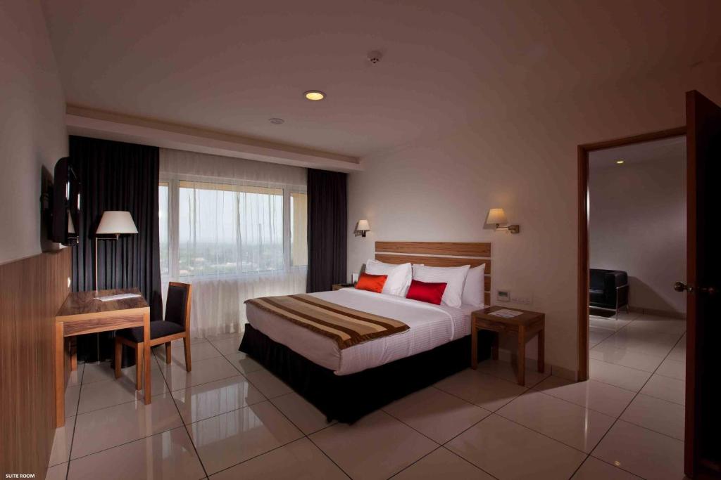 At Wonderla Resort, we offer a variety of rooms to suit every traveler's needs. Our Deluxe Room features a spacious layout of 23 square meters, perfect for those seeking a cozy and comfortable stay. With 2 Single Beds, this room is ideal for friends or colleagues traveling together. For those looking for a touch of luxury, our Executive Deluxe Double or Twin Room offers a generous space of 24 square meters. With 1 King Bed, this room is perfect for couples or solo travelers seeking a little extra space and comfort.